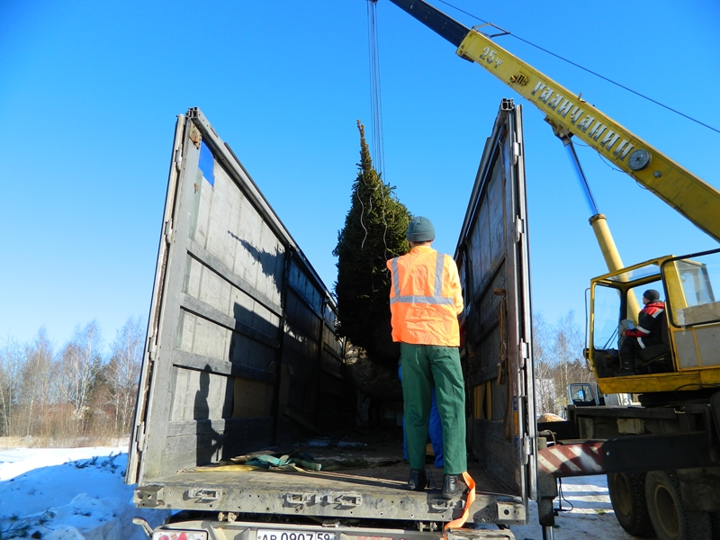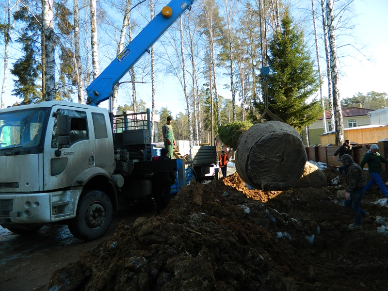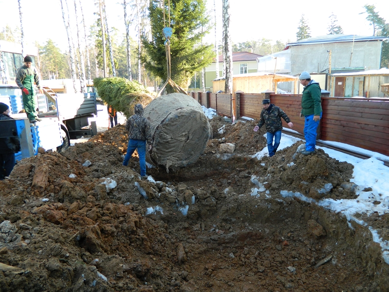 Посадка крупномеров (больших деревьев)
