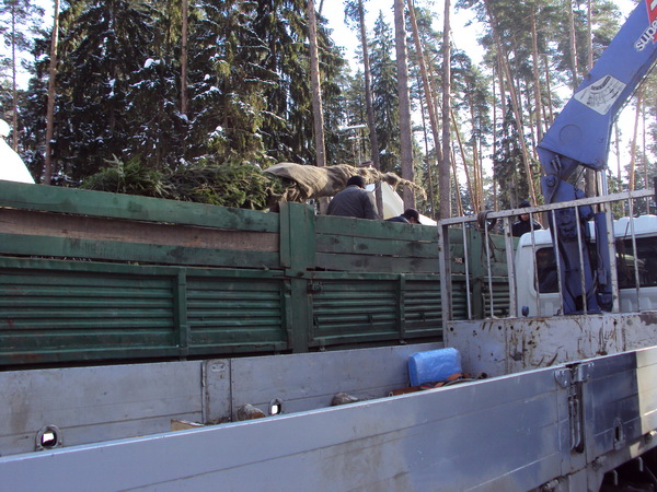 Посадка крупномеров (больших деревьев)